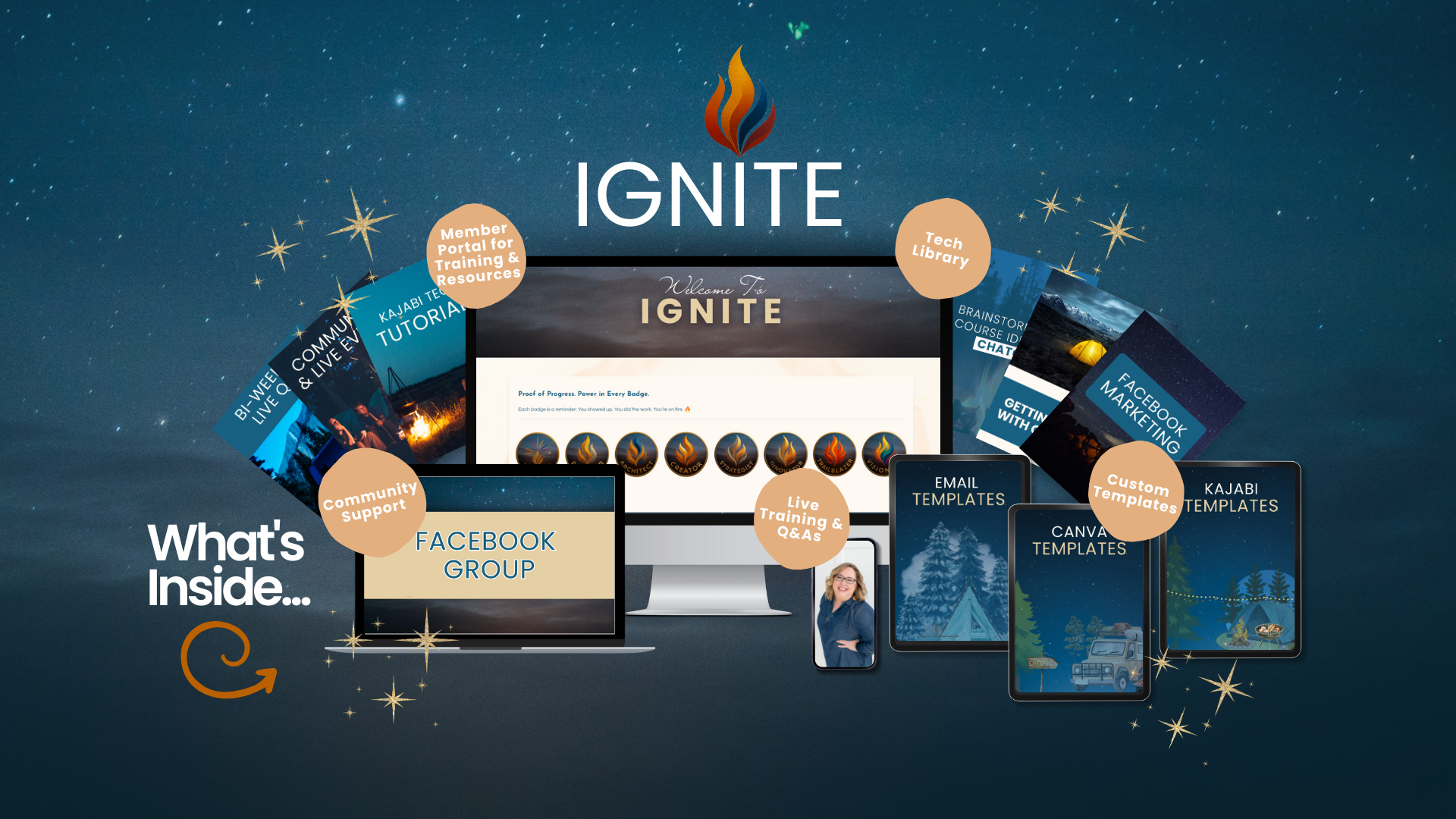 Build momentum month after month with expert training, live Q&A calls, tech tutorials, and a supportive community of digital entrepreneurs. IGNITE helps you stay focused, take action, and build a business that works for you.