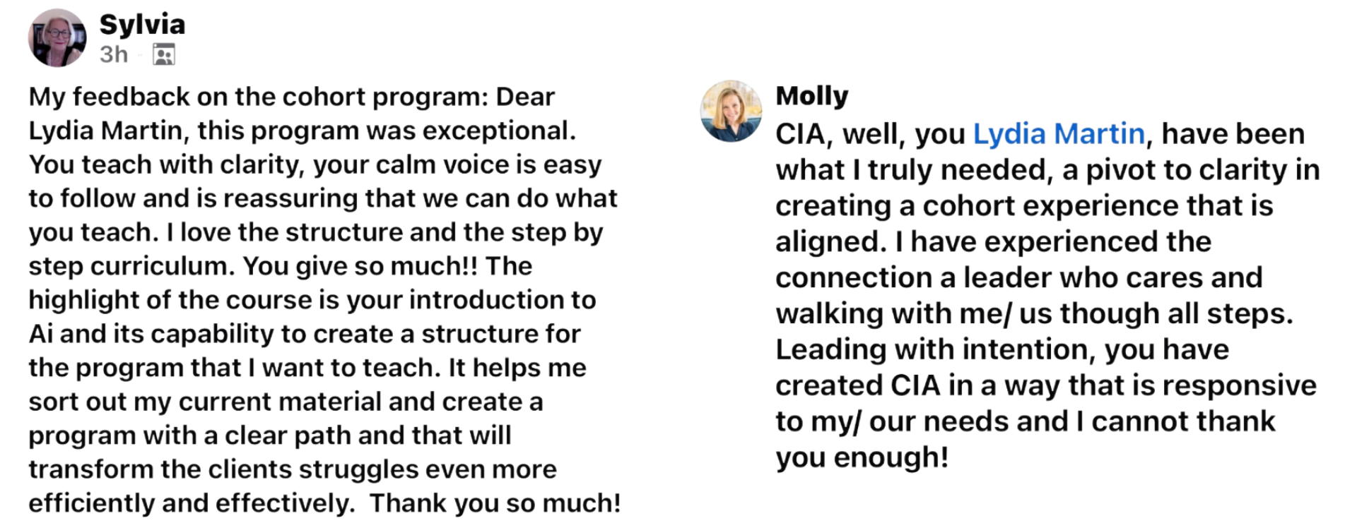 “For anyone who creates courses, I just had to tell you that I cannot recommend Lydia's Cohort Impact Accelerator enough!
