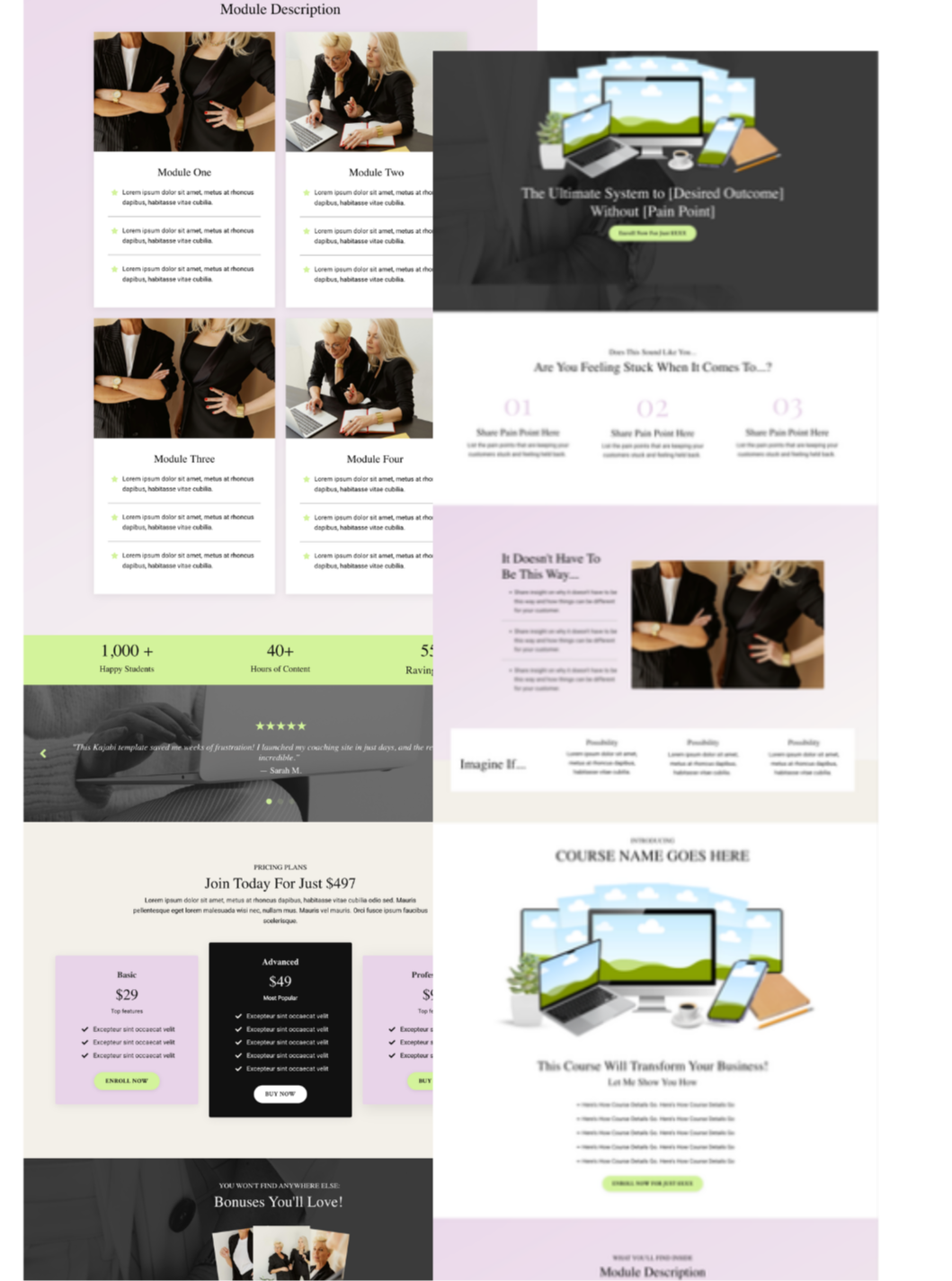 Click any link below to preview the live template pages. What you see is what you get — every page is fully customizable inside Kajabi.