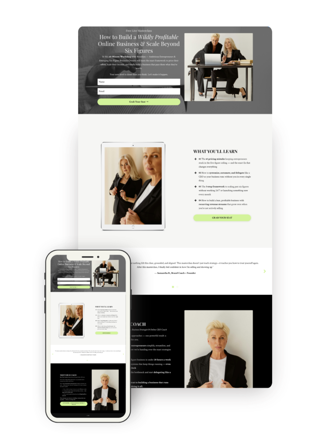 Your complete Brooklyn website — bold, high-energy pages built for coaches who are ready to scale like a CEO.