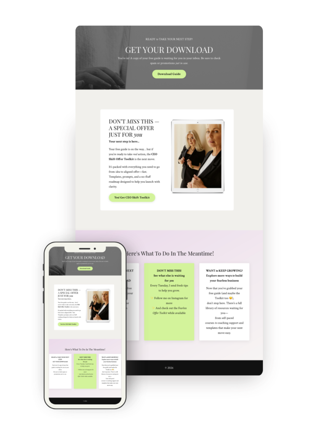 Full sales-style opt-in. Best for high-value freebies that need more positioning.